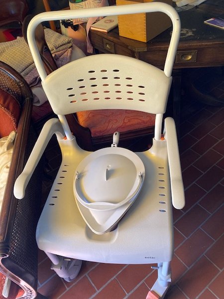Chaise percée pour toilettes ou douche de la marque ETAC - En très bon état - à venir chercher à Troinex (Canton de Genève).