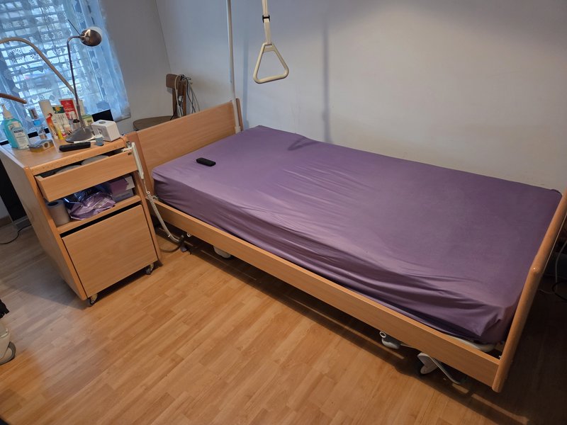 Elektrisches Pflegebett Embru HBW073-040 mit Bettaufrichter und passendem Beitisch mit Lampe. Guter… mehr erfahren
